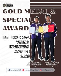 Prestasi membanggakan kembali ditorehkan oleh siswa SMA Negeri 5 Yogyakarta di kancah internasional. Dua siswa berbakat, Maheswara Nala Wisadewa (kelas XB) dan Jordan Oliver Adhiwinara (kelas XA), berhasil meraih Gold Medal serta Special Awards for Best Innovation dari Thailand dalam ajang International Young Inventors Awards (IYIA) 2025 yang digelar di Jakarta. Ajang IYIA merupakan kompetisi internasional yang mempertemukan para penemu muda dari berbagai negara untuk menampilkan karya inovatif yang berdampak luas bagi masyarakat. Tahun 2025 menjadi momentum istimewa bagi SMA Negeri 5 Yogyakarta karena karya inovatif yang diusung Maheswara dan Jordan berhasil mencuri perhatian dewan juri internasional dan delegasi dari Thailand. Dengan gagasan kreatif, riset yang matang, serta kemampuan presentasi yang solid, keduanya mampu bersaing dengan ratusan peserta dari dalam dan luar negeri. Penghargaan Gold Medal menjadi bukti keunggulan karya mereka dalam kategori inovasi muda, sementara Special Awards for Best Innovation dari delegasi Thailand menegaskan pengakuan internasional atas nilai dan potensi pengembangan karya tersebut. Kepala SMA Negeri 5 Yogyakarta menyampaikan apresiasi yang tinggi atas pencapaian ini. Beliau menegaskan bahwa keberhasilan Maheswara dan Jordan merupakan hasil dari kerja keras, bimbingan guru, serta dukungan lingkungan sekolah yang selalu mendorong lahirnya generasi inovatif dan berprestasi. Prestasi ini diharapkan dapat menjadi inspirasi bagi seluruh siswa SMA Negeri 5 Yogyakarta untuk terus berkarya, berinovasi, dan berani bersaing di tingkat global. Sekolah juga berkomitmen untuk terus memberikan fasilitas dan pendampingan terbaik agar muncul lebih banyak penemu muda yang mampu mengharumkan nama bangsa. Dengan raihan gemilang ini, SMA Negeri 5 Yogyakarta kembali menegaskan posisinya sebagai sekolah unggul yang tidak hanya berprestasi di bidang akademik, tetapi juga pada ajang inovasi internasional. Selamat kepada Maheswara Nala Wisadewa dan Jordan Oliver Adhiwinara atas prestasi luar biasa ini!